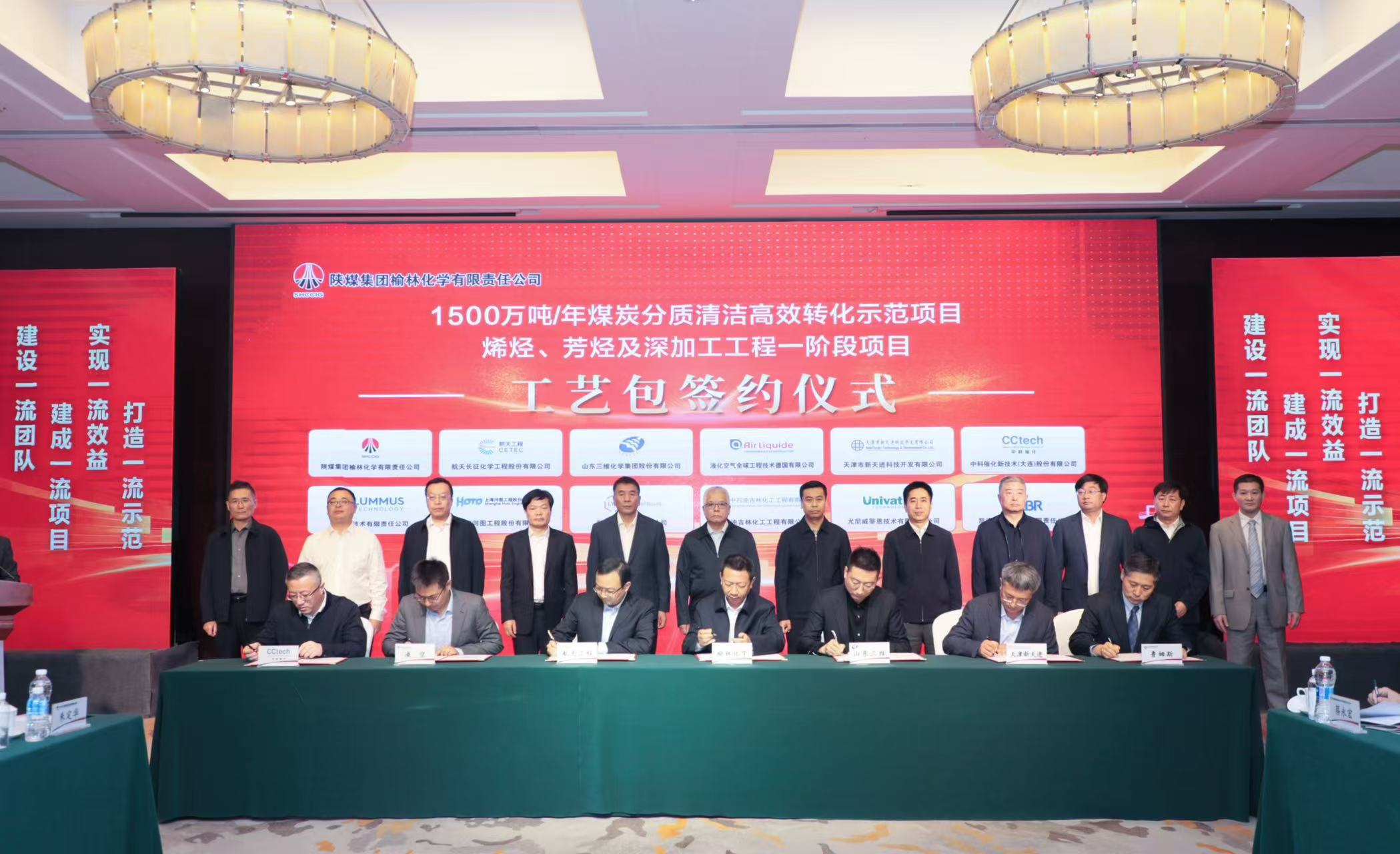 2024年10月15日,陜煤集團榆林化學有限責任公司1500萬噸/年煤炭分質清潔高效轉化示范項目烯烴、芳烴及深加工工程一階段項目基礎設計開工會暨工藝包簽約儀式在西安召開。
